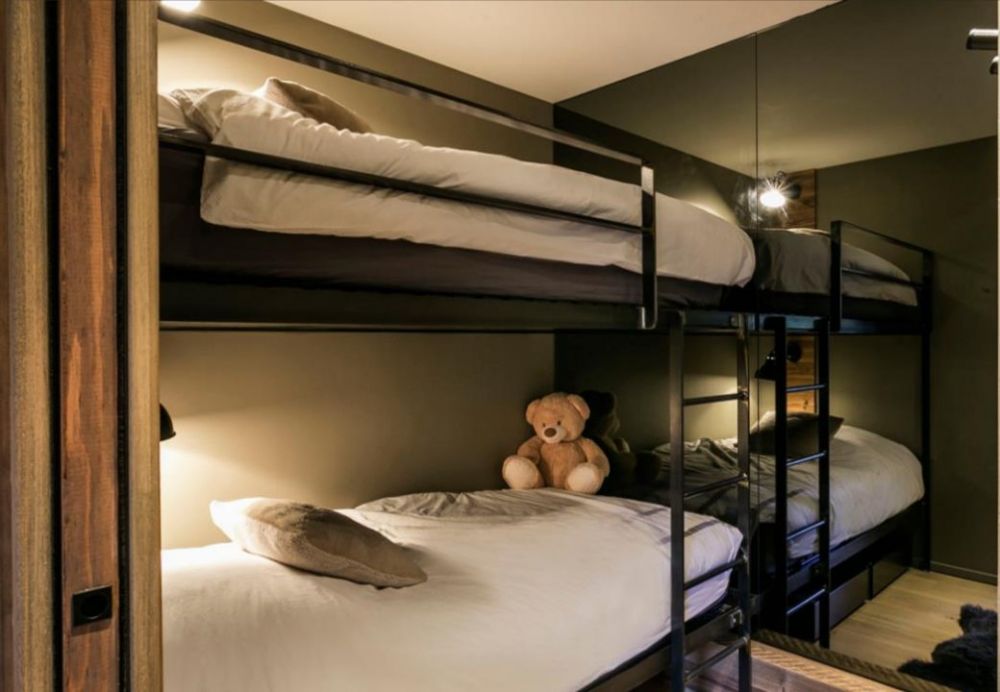 - 1 chambre avec 2 lits superposés 90x200, tiroirs de rangement, couettes 140x200, oreillers 60x60