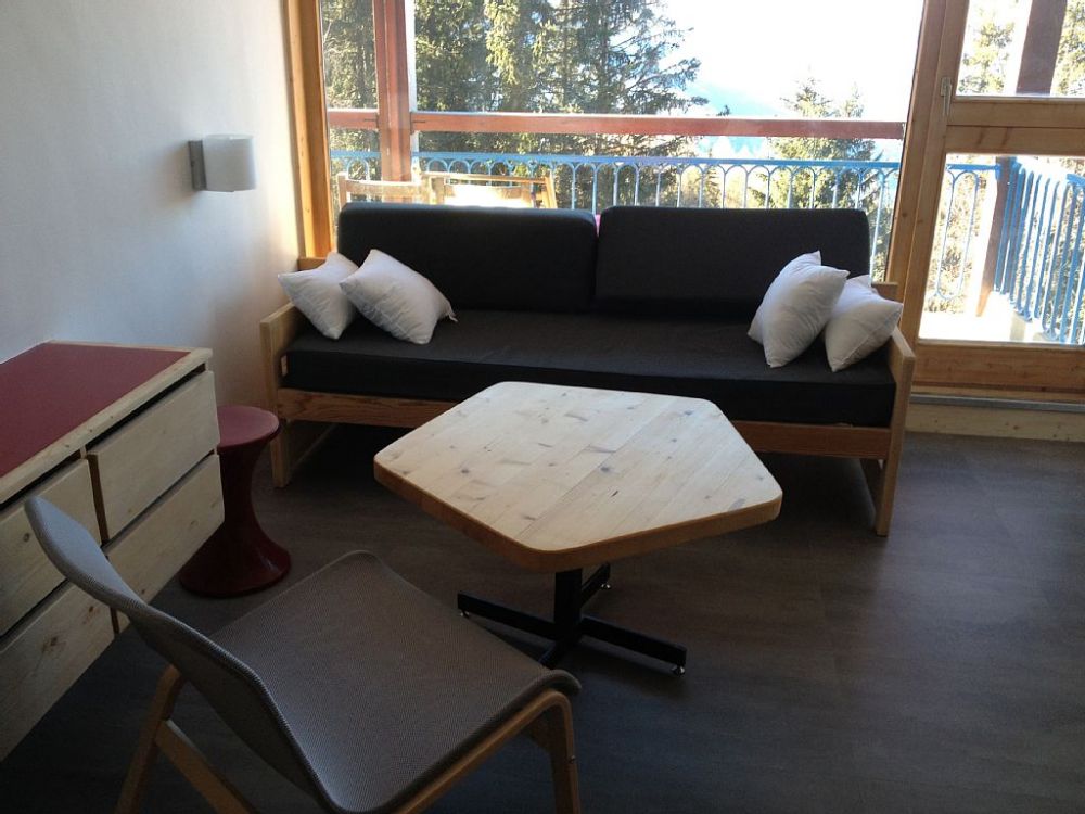 Aux Villards, immeuble Les Arandelières, au coeur de la station d'Arc 1800, appartement 4 pièces de 70 m2 de plain pied, pour 6 personnes, entièrement rénové, au calme, en plein soleil, avec grand balcon individuel de 15 m2 ,vue vallée.