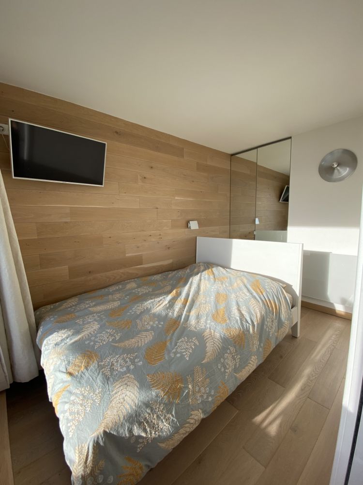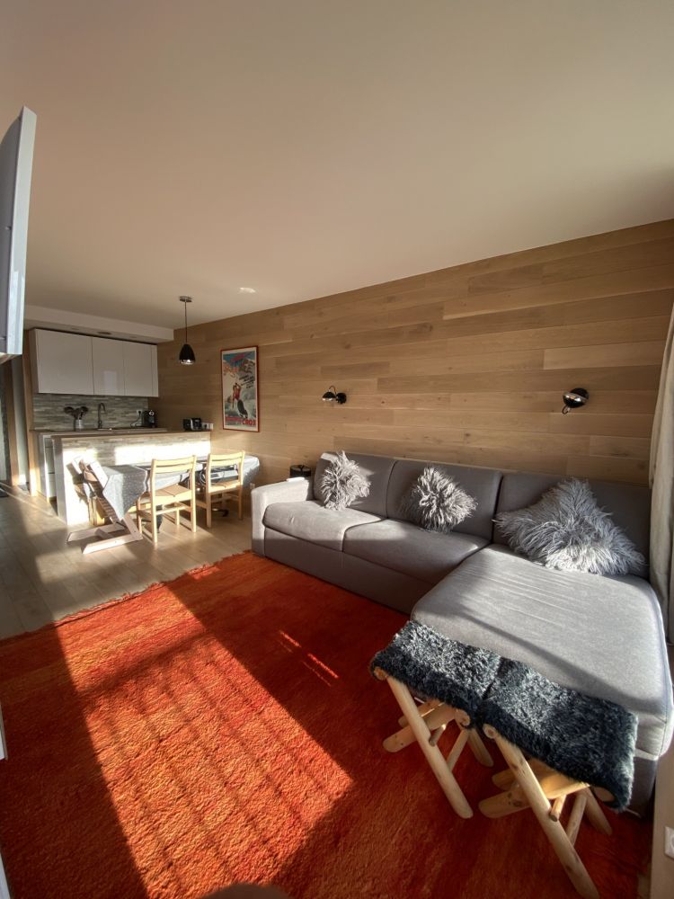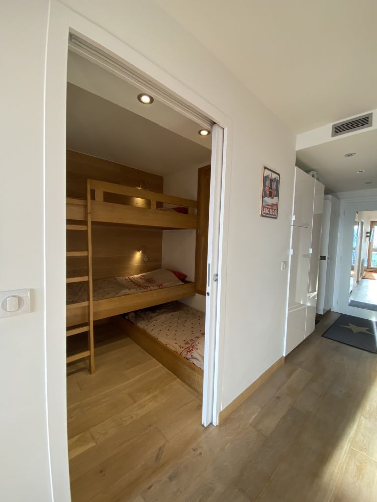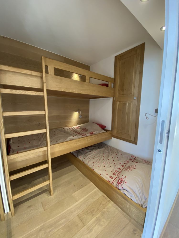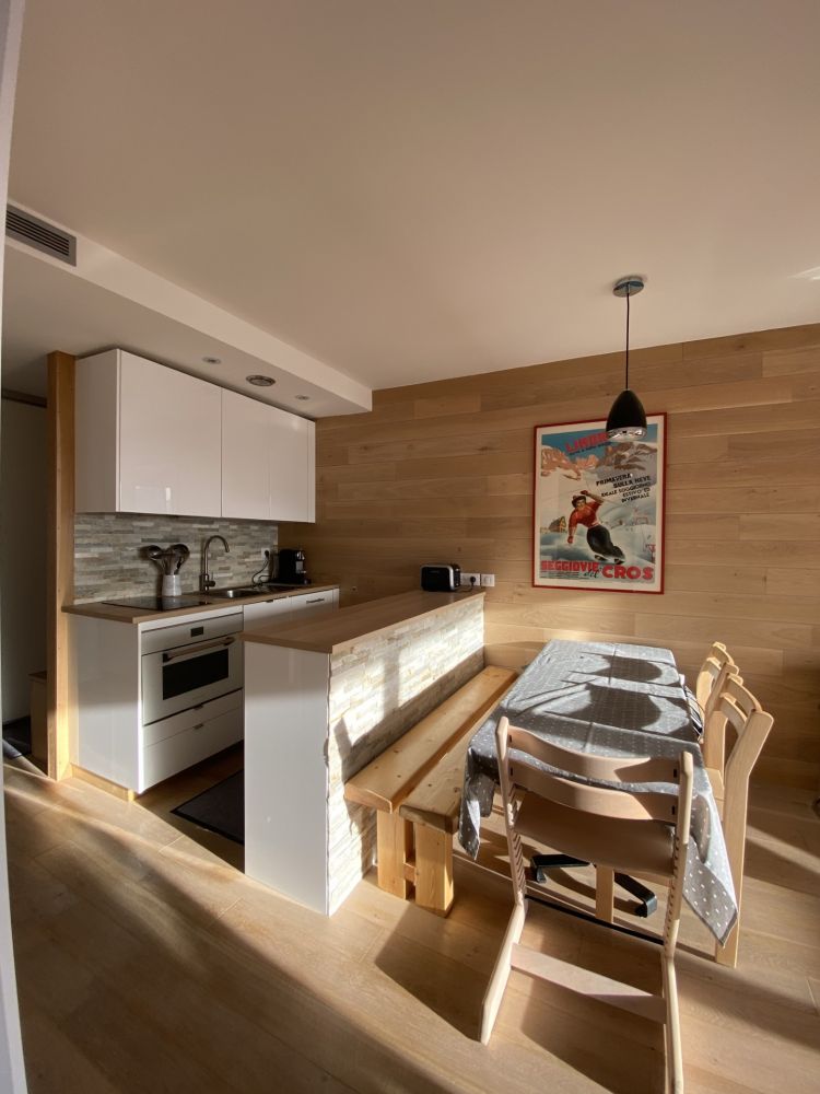 Entrée avec placard à skis + sèche chaussures électrique 5 paires, séjour avec TV, 1 chambre lit double avec TV, 1 chambre enfants 3 couchages, cuisine équipée (four/micro-onde, lave-vaisselle, grand réfrigérateur-congélateur, machine nespresso ...), salle de bain typique Charlotte Perriand.
